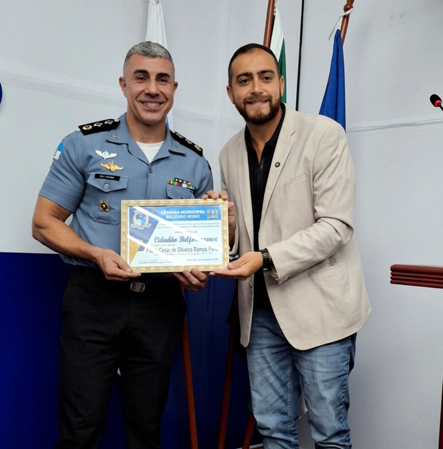 Concedeu também, através do vereador Matheus Igual a Você, o título de Cidadão Belforroxense ao Major da Polícia Militar Paulo César Oliveira Ramos Filho pelos relevantes serviços prestados à comunidade.